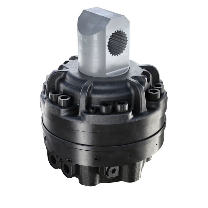 - Unikátní radiální pístové motory vybavené hřídelí (S) pro pohon drtičů materiálů a vrtacích zařízení