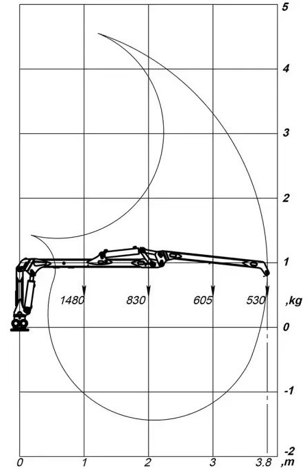 Dosah hydraulické ruky 3,8 m